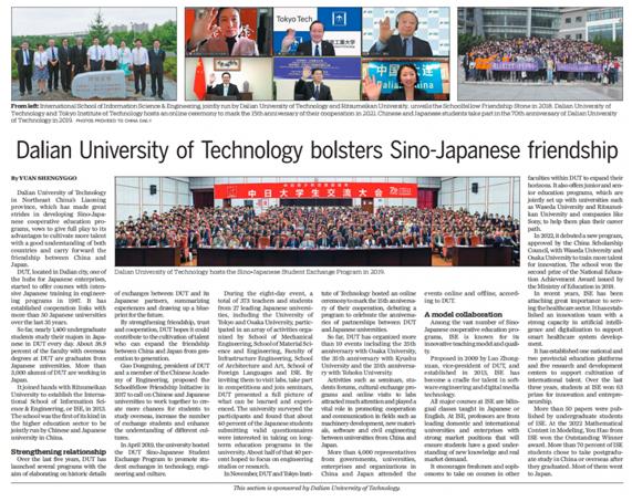 This year marks the 50th anniversary of the normalization of diplomatic relations between China and Japan, which is an important milestone in the history of China-Japan relations. The achievements of educational exchange between Dalian University of Technology (DUT) and Japanese universities have been recommended in the “2022 Special Issue on the 50th Anniversary of Normalization of Diplomatic Relations between China and Japan” by China Daily.