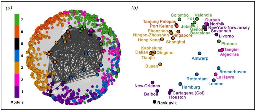 It is of great importance to establish the better understanding on the maritime transportation system for both academia and policy-making, since around 80% of global trade by volume is transported by sea, and thus the maritime transportation system is fundamental to the world economy. To this end, the two teams collaboratively investigated the structural properties of the global liner shipping network (GLSN), finding that it is an economic small-world network with a trade-off between high transportation efficiency and low wiring cost. Furthermore, the mode of local segregation and global integration was examined by using three respective structural measures. In particular, with a new gateway-hub measure being introduced, their work reveals a distinctive structural-core structure of the investigated network that endogenously evolves into the backbone of the global maritime cargo transportation system. This finding offers new insights into the GLSN’s structural organization complexity and its relevance to the international trade. From network science point of view, this investigation also sheds light on the efficient and robust organization of real-world complex networks.