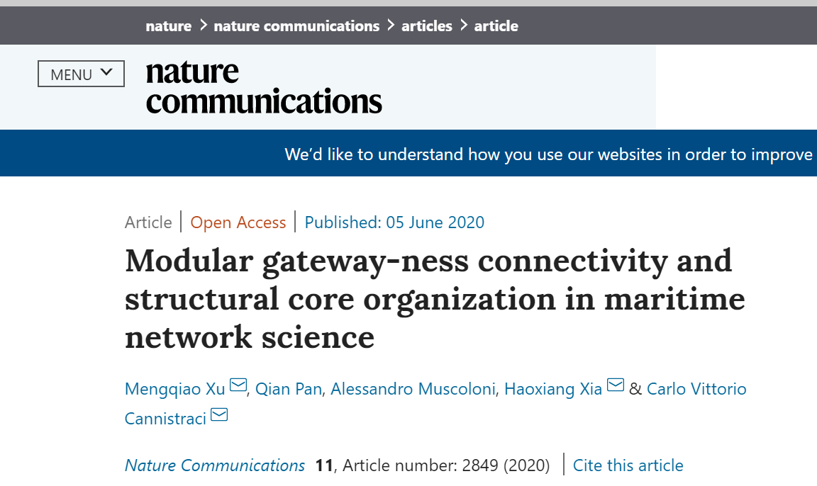 Professor Xia Haoxiang’s team from the School of Economics and Management and the Research Center for Big Data and Intelligent Decision-Making of DUT recently published their work entitled “Modular gateway-ness connectivity and structural core organization in maritime network science” () in Nature Communications in collaboration with Dr. Carlo Cannistraci's team from Dresden University of Technology, reporting their findings on the structural characteristics of the global liner shipping network.