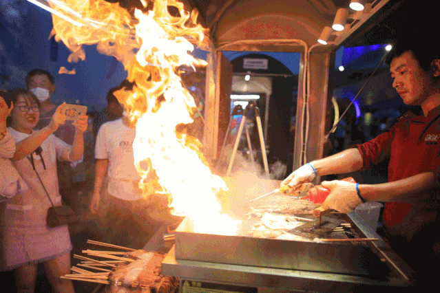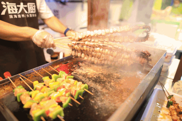 The market is full of the yelling of vendors, and people are busy shuttling from stall to stall to taste the delicious food enjoyably.
