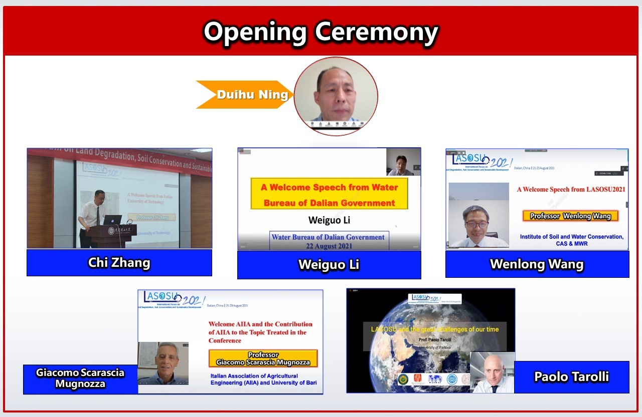LASOSU2021, the International Forum on Land Degradation, Soil Conservation and Sustainable Development, 2021, was successfully held as an online conference recently. The conference is supervised by the World Association of Soil and Water Conservation (WASWAC), Italian Association of Agricultural Engineering (AIIA) and Soil Erosion Division of CSWCS (China) and the conference is organized by Dalian University of Technology (China) and University of Padova (Italy). Thirteen other famous institutes are involved in co-organizing the conference, e.g., the Institute of Soil and Water Conservation of CAS & MWR (China), Beijing Normal University (China), Huazhong Agricultural University (China), Xi’an University of Technology (China), Italian Association for Soil and Water Bioengineering (Italy), etc.
