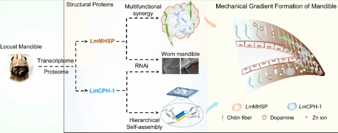 The teams' groundbreaking findings were featured in two prestigious international journals. The first paper, titled "A core structural protein that builds the locust mandible with a mechanical gradient," was published in ACS Nano, a renowned journal with an impact factor (IF) of 17.1 and recognized in the Nature Index. The second paper, "Major structural protein in locust mandible capable of forming extraordinarily stiff materials via hierarchical self-assembly," found its platform in Matter, the sibling publication of the influential Cell journal, boasting an impressive impact factor of 18.9.
