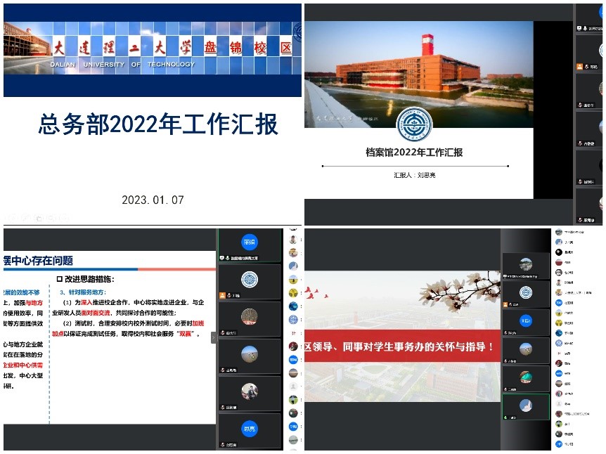 此次述职包含校区党政办公室、纪工委办公室、总务部、人事人才办公室、教学事务办公室、学生事务办公室、财务办公室、图书馆盘锦分馆、档案馆盘锦分馆、分析测试中心10个单位,各单位从学习贯彻落实习近平新时代中国特色社会主义思想和党的二十大精神、落实学校第十四次党代会精神,本单位年度特色亮点工作、常规工作、现存问题及2023年工作计划等多个方面进行了梳理汇报。