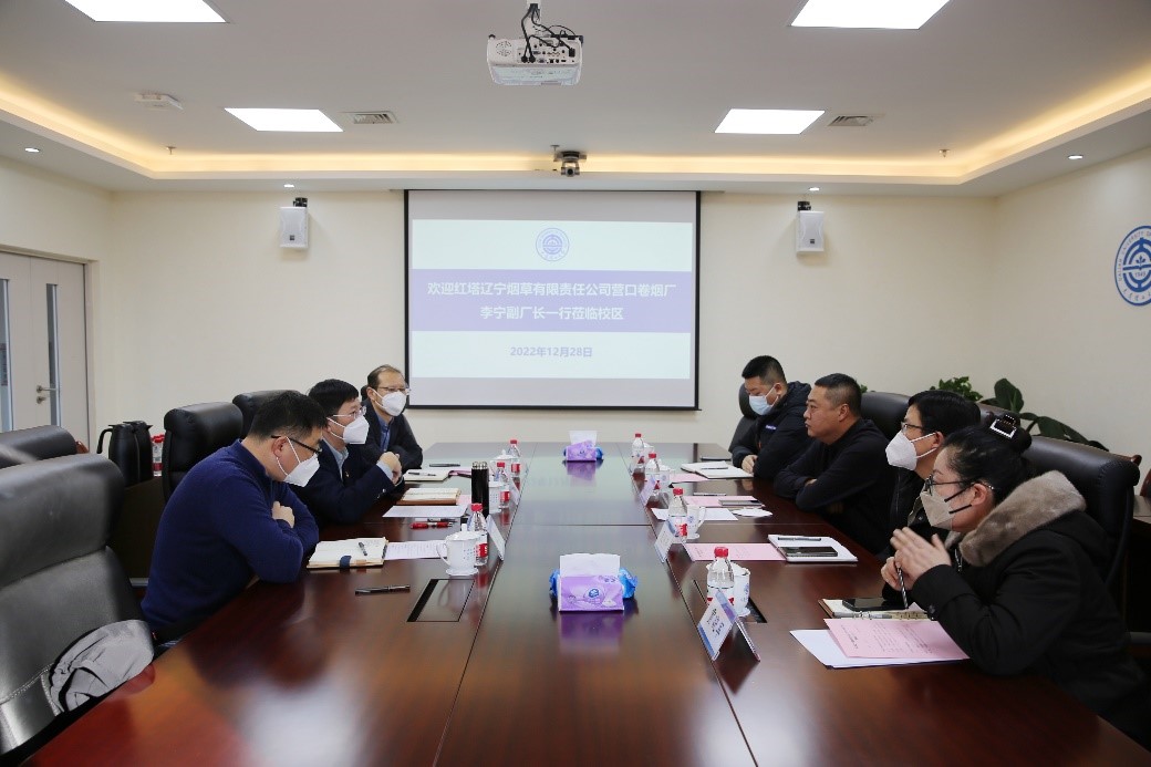 12月28日上午,红塔辽宁烟草有限责任公司营口卷烟厂副厂长李宁一行来访校区,围绕校企合作进行沟通交流。校长助理兼盘锦校区党工委书记、管委会主任占敬敬,校区党工委副书记、管委会副主任曲长生,商学院、知识产权学院副院长李彤在G01行政服务楼E301会议室会见客人。