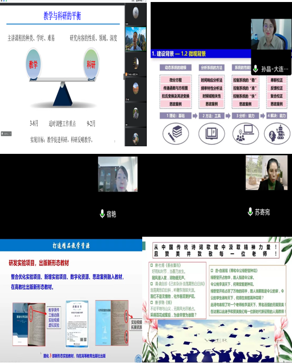 生物工程学院栾雨时教授以《兼顾教学与科研、成为满意的自己》为主题,从国家自然科学基金申报完成的详细讲解,思考教学与科研的作用及发展进程。机械工程学院孙晶教授以《工科专业类教材与教学资源建设》为主题,以“控制工程基础”为例,详细讲解其建设背景、建设内容和应用推广,阐释教材与教学资源是人才培养的根本依据和重要载体。化工学院高级工程师宿艳以《实验教学与实验室建设》为主题,通过讲解基础化学实验中心建设、实验教学改革的必要性、智慧教学模式设计与应用,达成智慧教学改革的成效。首都师范大学党委教师工作部部长兼教师发展中心主任苏寄宛教授以《党的二十大精神为指引,新时代新征程上师德建设再谱华章》为主题,通过“明确形势任务 以更高的政治站位涵养优秀师德、加强制度建设 以更强的责任意识严守师德规范、坚持师德传承 以更深的爱国情怀赓续中国精神”三方面内容与大家热情交流。