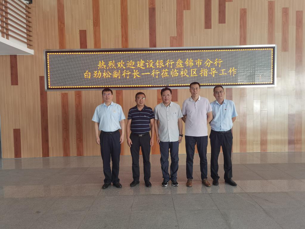 8月25日下午,中国建设银行盘锦市分行副行长、我校校友白劲松一行到校区调研,盘锦校区管委会副主任于晓旭接待来访客人,校区财务办负责人陪同。双方就建行与校区的合作事宜展开了深入的交流和讨论。