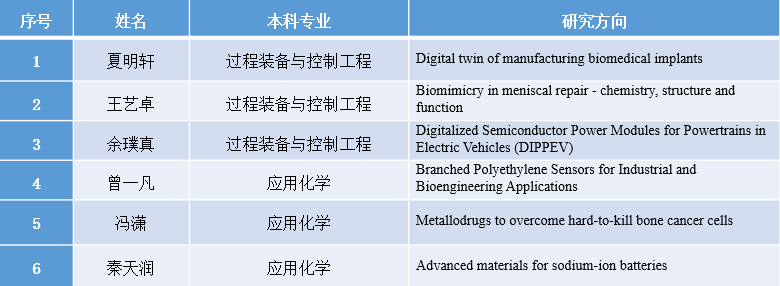 图:学院2022届成功申请莱斯特直博项目毕业生(左上起:冯潇、秦天润、曾一凡;左下起:余璞真、夏明轩、王艺卓)