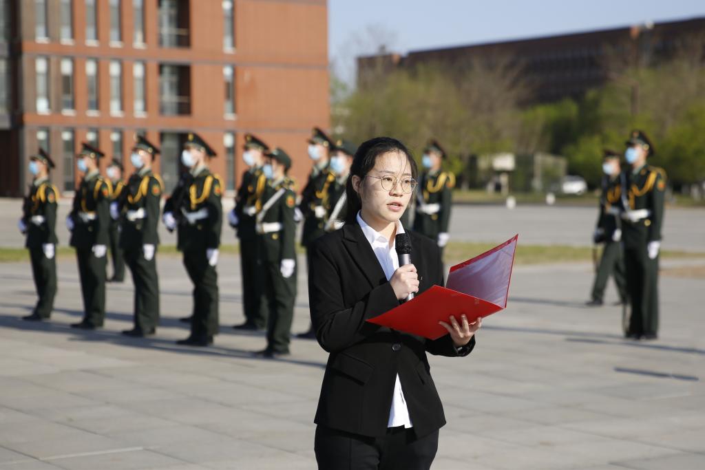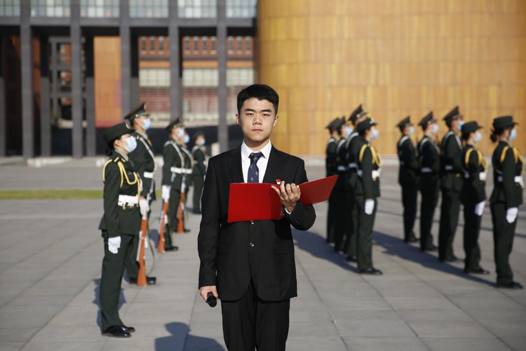 主持人宛士剑在仪式最后动情的说道:“当代中国青年是与新时代同向同行、共同前进的一代,生逢盛世,肩负重任。我们要铭记时代责任,做社会主义核心价值观的坚定信仰者、积极传播者、模范践行者,向英雄学习、向前辈学习、向榜样学习,争做堪当民族复兴重任的时代新人!”