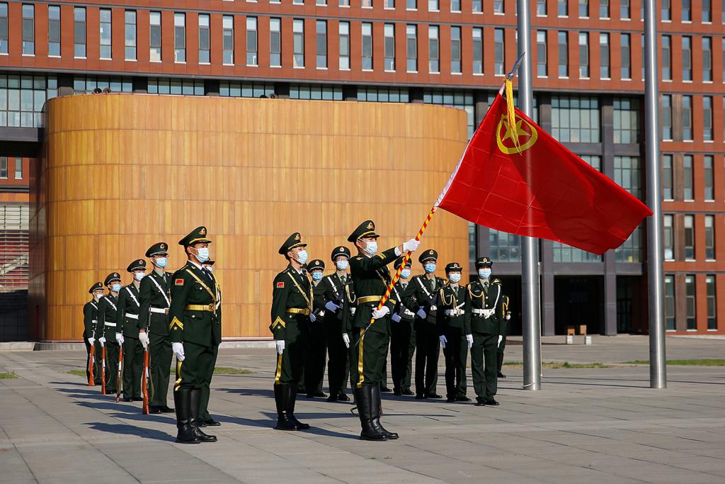 为深入学习贯彻习近平总书记在中国人民大学考察时的重要讲话精神,引导校区广大团员青年传承弘扬“爱国、进步、民主、科学”的五四精神,开展好“喜迎二十大、永远跟党走、奋进新征程”主题教育实践,进一步激励广大团员青年传承红色基因,以实际行动迎接党的二十大胜利召开,校区于5月1日清晨在A01东广场举行了纪念五四运动103周年主题升旗仪式,沉浸式带领全体新团员和部分老团员代表学习党史和团史,践行青春誓言。