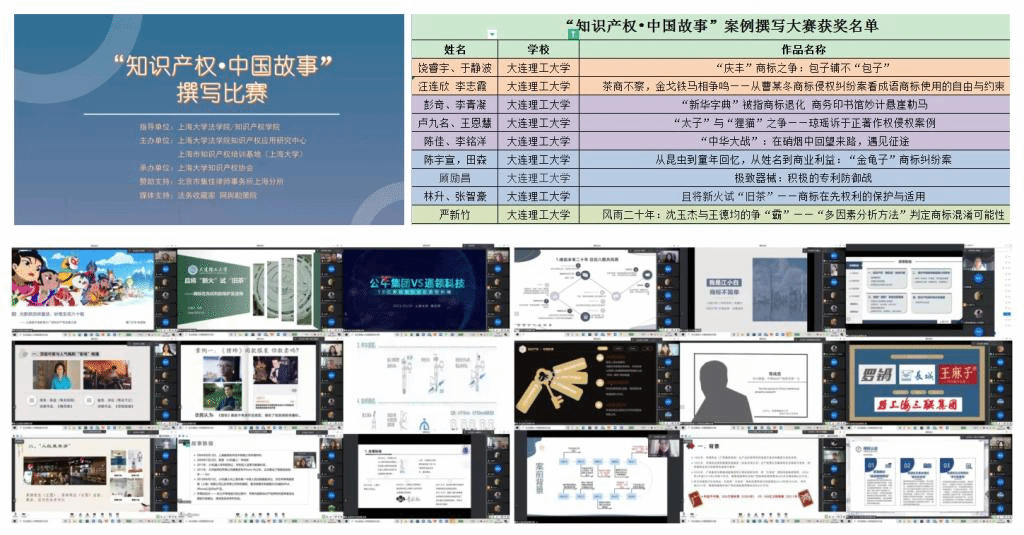为进一步挖掘中国知识产权故事,总结知识产权中国经验,传播中国知识产权声音,上海大学法学院知识产权应用研究中心联合上海市知识产权培训基地面向全国高校知识产权专业学生举办了2021“知识产权·中国故事”案例撰写大赛。经过参赛作品展示、入围初选、专家评审以及现场介绍等环节的激烈角逐,持续近4个月的2021“知识产权•中国故事”案例撰写比赛于3月26日落下帷幕。本次比赛商学院、知识产权学院共9支代表队参赛,最终获得特等奖2项、一等奖3项、二等奖3项、三等奖1项,实现全员获奖,同时知识产权专业2019级本科生汪连欣作为获奖代表发言,既展现了学院知识产权专业人才培养的成果,又为学校、学院争得了荣誉。