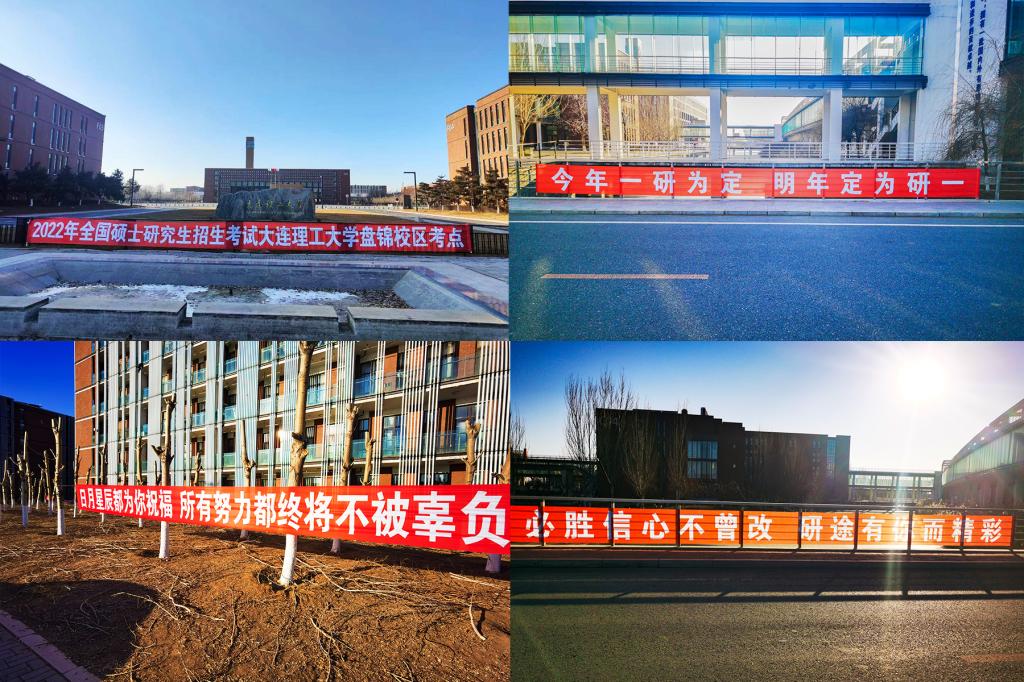 考点全面贯彻属地防疫要求和学校考点工作要求,对研考期间疫情防控的原则、组织领导、应急处置等工作进行了详细部署。积极与盘锦市沟通对接,寻求属地支持,协调卫健委、公安局、人民医院、武委会、电力等6个部门做好研考的外围服务保障工作;情暖考生、答疑解惑。通过网站、微信平台等发布考试信息,确保考试提前了解考试相关的政策和要求,设立咨询热线,帮助考生及时解答各类疑问;细化服务、贴心关怀。组织学生在校进行统一的免费核酸检测,免除学生核酸检测顾虑;对考试环境进行了精心布置,为考生准备热水、士力架等,助力学生顺利考试;布置喷绘、条幅等宣传品,鼓励、祝福所有考生顺利考试。一条条横幅、一句句祝福、一张张笑脸,无不让学生感受在“家”研考的温馨。