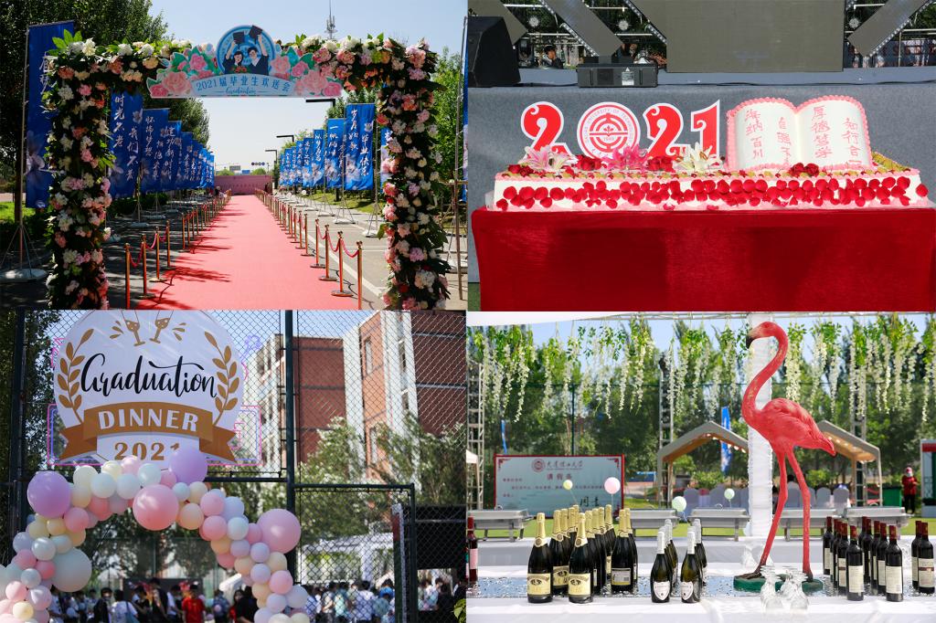 用一场欢送会,见证青春的成长毕业生欢送会作为校区每年毕业季最富有仪式感的活动,于6月19日在绿茵足球场举行。校区毕业生在这一刻盛装出席,仿佛化茧成蝶,完成了最后的蜕变,踏上红毯,告别四年的青春时光;留下签名,当作对校园最后的回忆;举起香槟,共同回忆青葱的岁月;分享蛋糕,一同品尝对未来的畅想。在欢送会上,毕业生代表的主题演讲,是对四年来成长的真情分享;毕业生辅导员和教师代表倾情献唱,送上对毕业生深深的祝福。