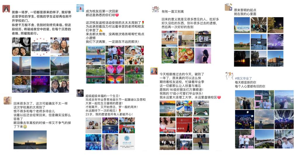 这次难忘的返校记忆,不少校友们在朋圈纷纷晒图,同学群也热闹了起来,有欢笑、有回忆、有期盼。“有情怀,更有力量,是熟悉的校区味道,仿佛回到了那个在青葱校园里读书的时候”,一位刚刚参加完返校活动的校友在朋友圈留下这样的心声。