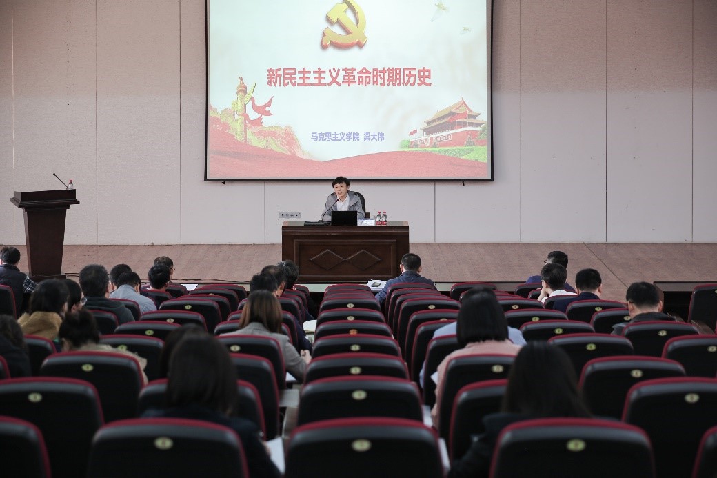 会前,校区党工委邀请马克思主义学院梁大伟教授围绕“新民主主义革命时期历史”作辅导报告,驻校区各单位科级以上干部及部分师生党员参加学习。