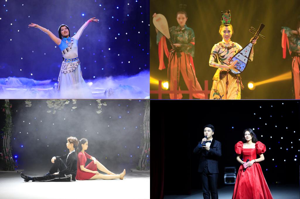 歌伴舞《芳华》回顾那些曾经逝去的青春,容颜易逝,但记忆的轮廓,永远不会随着岁月的消磨而褪色。现代舞《爱乐之城》讲述了一个关于爱与梦想的故事,只有真正学会放松和包容,在这个广阔的世界里理解自己,才能追寻真正的梦想。《丹青》将舞蹈与国画结合,运用舞台空间的调度与高低的对比,给人以无尽遐想,十足韵味。《千年之约》舞出了一幅美轮美奂的丝路风情画,为观众们呈现出绚丽的敦煌莫高窟盛景。