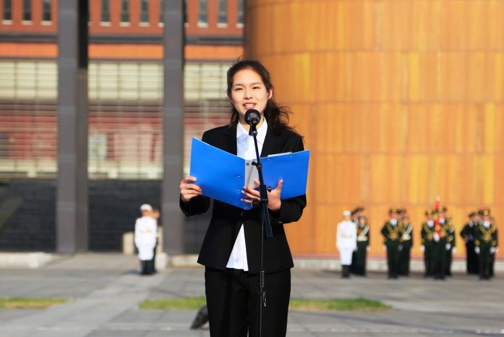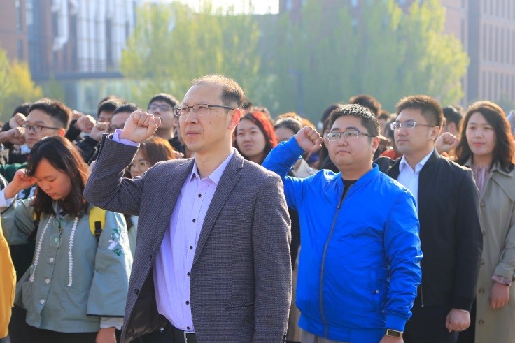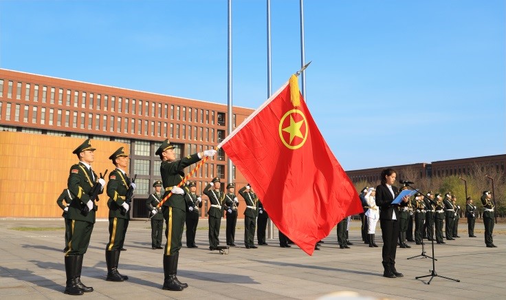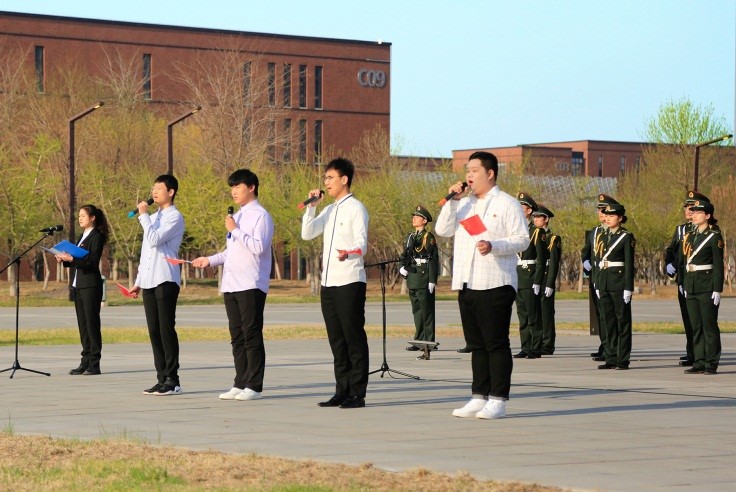 主持人徐若竹在仪式最后动情的说道:“现在,五星红旗已经高高挂起,历史的火炬已经传到我们手中,伟大的事业已经落在我们肩上。习近平总书记在4月19日清华大学考察时激励广大青年:要爱国爱民,从党史学习中激发信仰、汲取力量,树立为祖国为人民永久奋斗、赤诚奉献的坚定理想;要锤炼品德,矢志追求更有高度、更有境界、更有品位的人生;要勇于创新,以聪明才智贡献国家,以开拓进取服务社会;要实学实干,在攀登知识高峰中追求卓越,在肩负时代重任时行胜于言。要立大志、明大德、成大才、担大任,努力成为堪当民族复兴重任的时代新人,让青春在为祖国、为民族、为人民、为人类的不懈奋斗中绽放绚丽之花!”