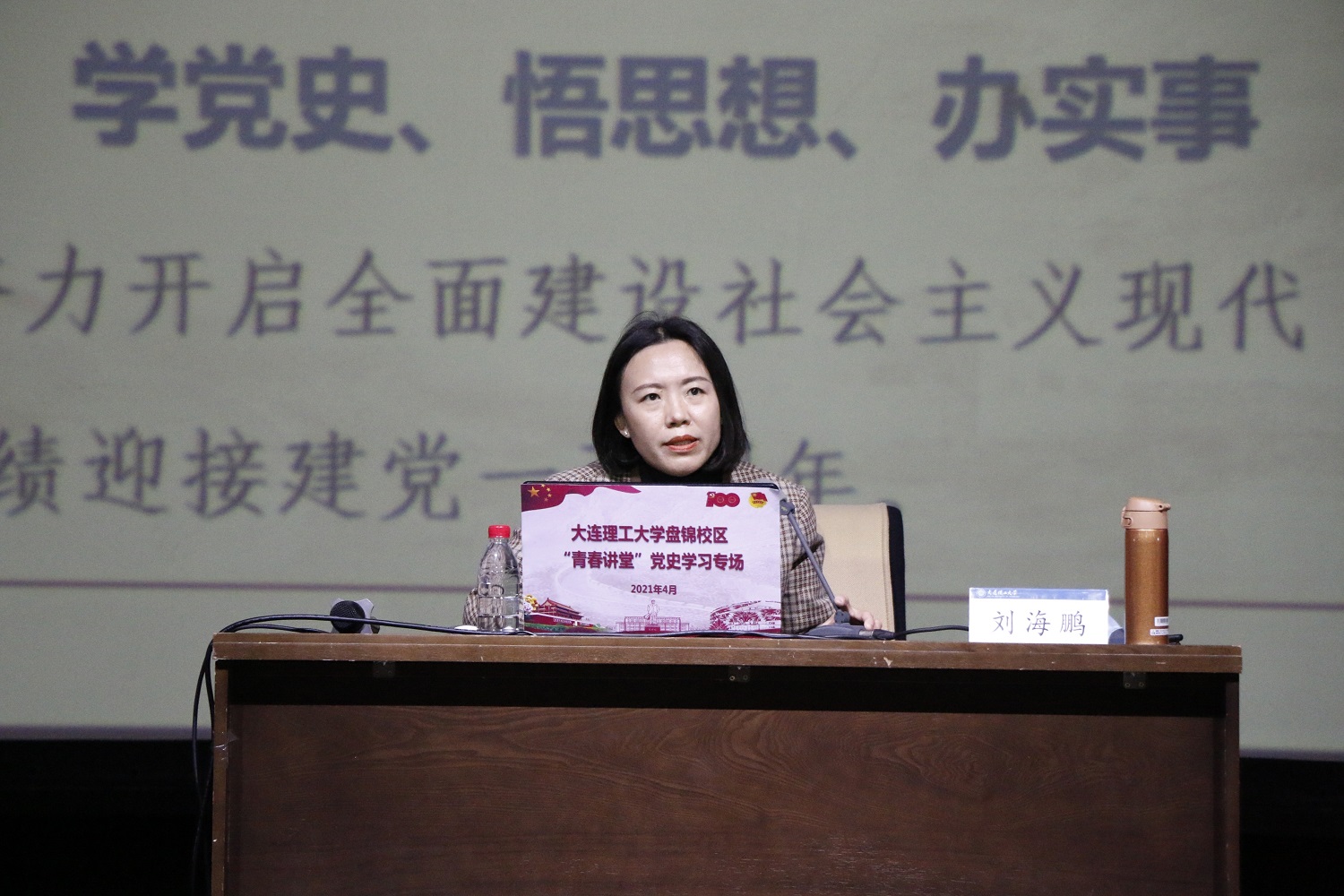刘海鹏老师从“全面了解中国共产党百年奋斗的光辉历程”、“准确把握党史学习教育的总体要求”、“不忘初心跟党走,青春建功新时代”三个方面进行了阐述。她结合习近平总书记关于党史学习的重要讲话,讲述了中国共产党百年奋斗的光辉历程,带领同学们详细了解“学史明理”“学史增信”“学史崇德”“学史力行”的党史学习教育具体要求,勉励同学们要强化理论思维、筑牢信仰之基、弘扬优良传统、做到知行合一。