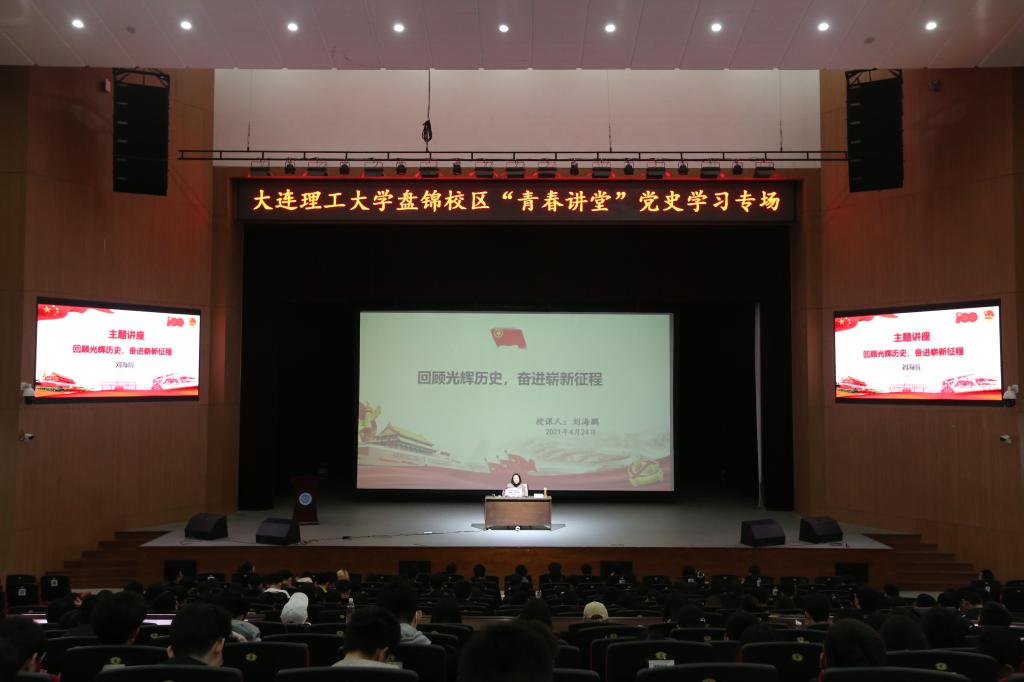 4月19日上午,习近平总书记在清华大学建校110周年前夕来到清华大学考察,与师生代表座谈并发表重要讲话。为深入学习习近平总书记在清华大学考察时的重要讲话精神,开展好“学党史、强信念、跟党走”学习教育,引导校区广大团员青年学史明理、学史增信、学史崇德、学史力行,激励广大青年学生传承弘扬五四精神,担当民族复兴大任,校区团工委于4月24日特邀大连市直机关工委办公室副主任刘海鹏老师做客“青春讲堂”党史学习专场,为校区学子做“回顾光辉历史,奋进崭新征程”主题讲座,校区500余名团员青年聆听讲座。