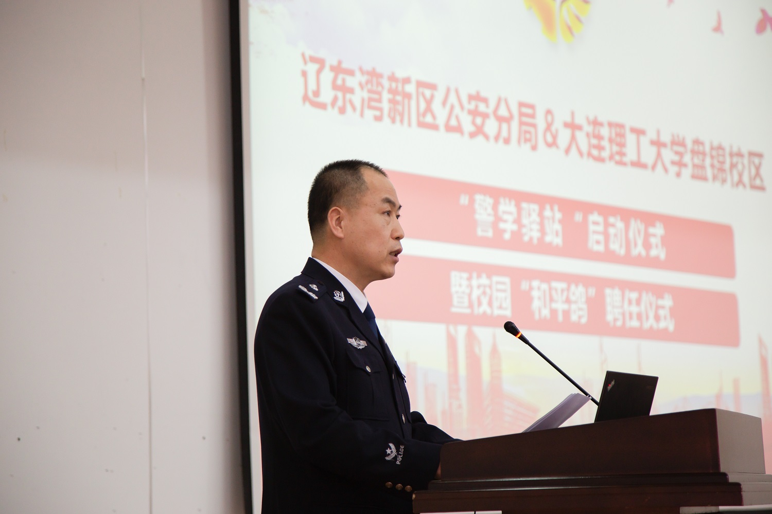 为进一步加强校园安全管理,强化安全防范体系建设,盘锦市公安局辽东湾分局与校区协商共建“警学驿站”,共同维护校园平安稳定。在经过为期近4个月的调研、可行性论证、体系设计、“和平鸽”招募等筹备工作后,于4月14日在行政办公楼报告厅举行“警学驿站”启动仪式暨校园“和平鸽”聘任仪式。盘锦市公安局辽东湾分局党委副书记、政委张国民、辽东湾分局金帛湾派出所所长刘肖,校区管委会副主任兼总务部部长于小平、总务部副部长马颖利以及校区师生代表参加了启动仪式,仪式由总务部保卫科科长倪东鹤主持。