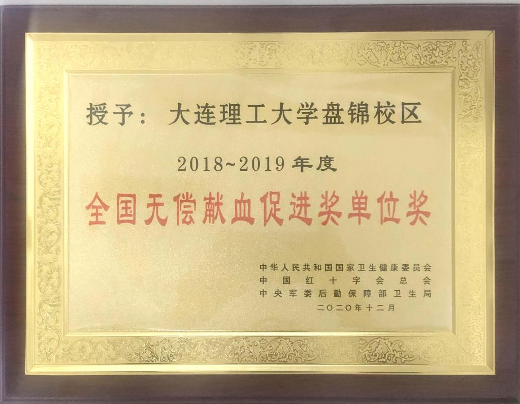 近日,国家卫健委、中国红十字会总会与中央军委后勤保障部卫生局联合下发了《关于表彰2018-2019年度全国无偿献血表彰奖励获奖者的决定》,对2018-2019年度在无偿献血工作中作出突出成绩的集体和个人进行了表彰,大连理工大学盘锦校区荣获“全国无偿献血促进奖”。这是校区首次获得该领域全国殊荣,这也是国家对无偿献血工作作出突出贡献单位给予的最高奖项,具有广泛社会影响。
