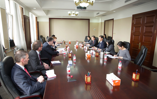 签约仪式后,莱斯特国际学院联合管理会第一次会议在主楼412室召开,双方就国际学院联合共建具体事宜及今后发展等进行了商讨。