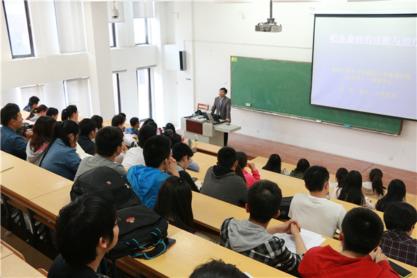 21日下午,邵明院长还为运动康复专业的同学讲授了“帕金森病的诊断与治疗”与“卡伦系统在康复中的运用”的专题导论课。