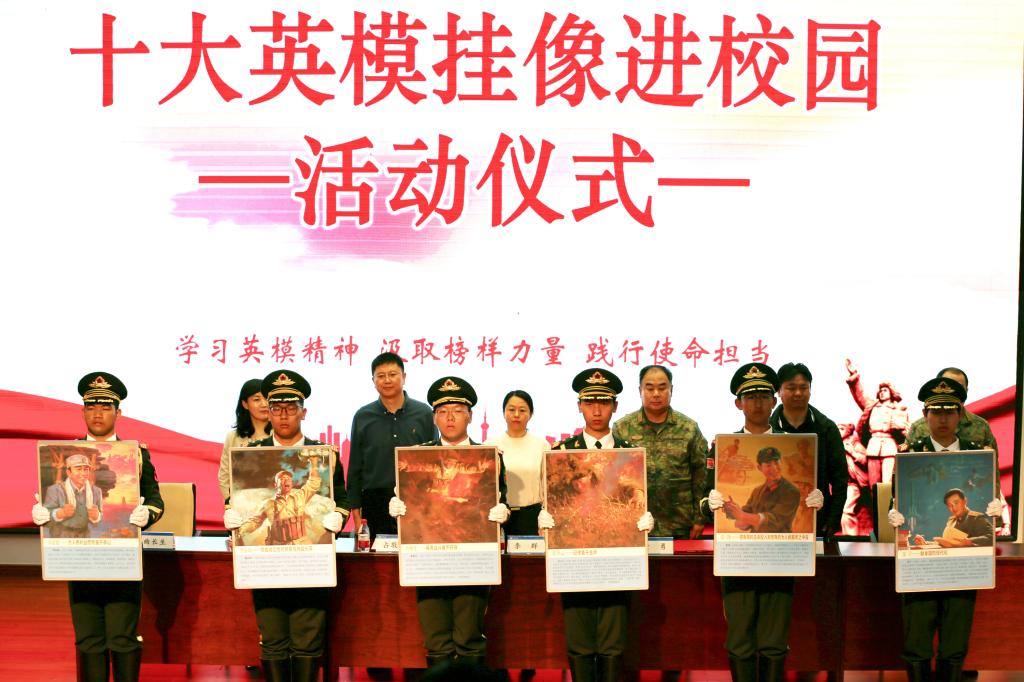 盘锦市委常委、盘锦军分区司令员黄勇在讲话中强调,在全市开展十大英模挂像进校园活动是响应习近平总书记加强全民国防教育的实际行动,是贯彻党中央决策部署的具体步骤,是加强青少年国防教育、推动国防教育进入课堂、融入校园文化的有力举措。同学们要深刻感悟英雄精神、厚植爱国情怀、培树国防理念,从十位英模中汲取伟大的精神、奋进的力量,努力成为强军强国建设、担当民族复兴的主力军。
