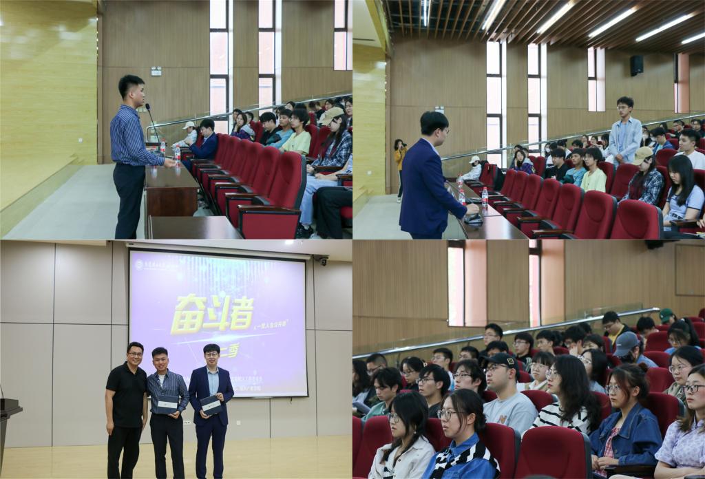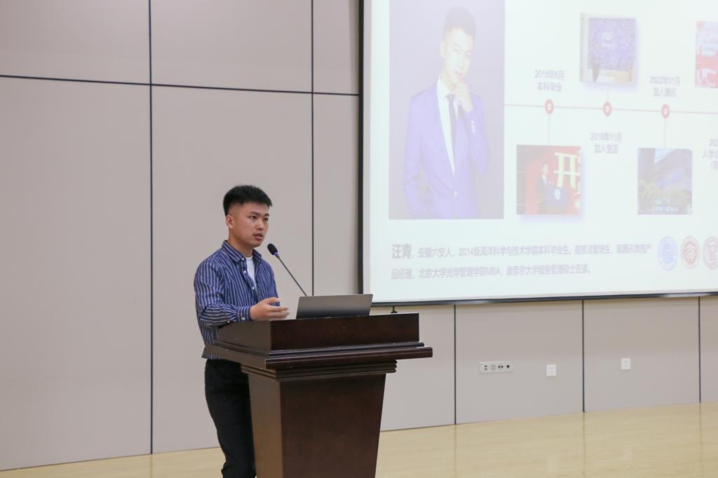 报告会上,汪青和吴津锋的奋斗故事,深深地激励了同学们珍惜当下,勇于探索,积极进取。汪青从个人大学学习生活和工作经历切入,介绍了自己从大一的迷茫踌躇,到大二之后明确目标积极进取;从毕业后就职于宝洁管培生工作,到目前任职于腾讯公司微信事业群,并被北京大学光华管理学院、美国康奈尔大学约翰逊商学院双学位工商管理硕士项目录取的奋斗历程。他建议同学们一定不能失去发展的弹性,要为自己创设更多的发展空间及可能性;鼓励同学们要珍惜大学时光,积极主动,以终为始,乐观勇敢;要善于总结自己每一年、每一周期的得失,为自己设立下一阶段奋斗目标;要积极参加实践活动,重视实习经历,从纷繁信息中筛选适合自己的经验,不断循环迭代自我,提升完善自己。