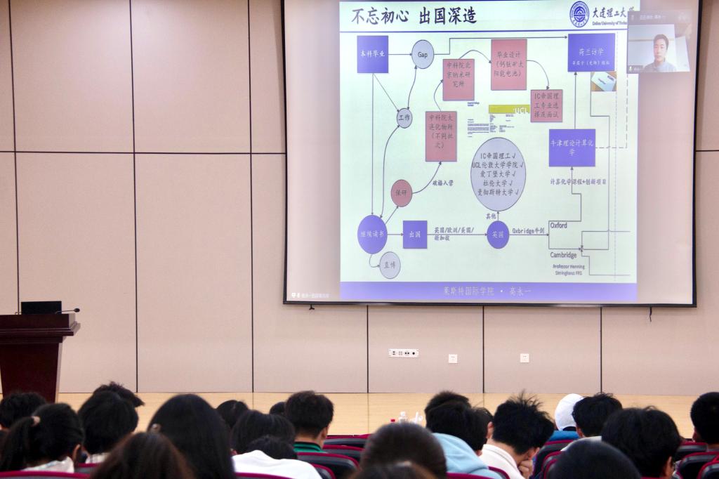 笃学不倦,砥砺青春。目前就读于牛津大学的高永一线上向大家讲述了他的奋斗故事。高永一在初入大工时,也曾懵懵懂懂度过了一段迷茫与低效的学习生活时光,后来他向身边榜样看齐,以榜样的力量激发前进的动力,最终找到了努力的方向。他向现场同学分享了自己高效学习和摆脱“伪勤奋”的经验,讲述了自己参加创新项目的经历和本科毕业时择校、面试遇到的困难与挑战。他说到,“要做一个科研人,需要将学习有效灌注入创新项目中,做到学无止境并融会贯通”。即将到剑桥大学卡文迪许实验室攻读博士的他表示,将会不忘初心,不负韶华,用奋斗点亮未来。