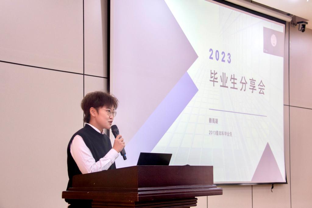 高瞻远瞩,脚踏实地。赖禹凝向师生分享了自己的留学与职业经历。她结合自己的亲身经历,跟在场师生阐述了留学必须明确的三个问题。作为一名经济学专业学生,赖禹凝充分考虑个人理想与职业规划,放弃了保研名额,选择到约翰霍普金斯大学出国深造。毕业回国后,她第一份实习工作是在华为财经管理方向岗位,在实习过程中,她重新规划了未来职业发展方向,她决定保持初心,仍向金融领域迈进。后来她参加了外资银行全球管培生项目,目前就职于外资银行中国总部。赖禹凝鼓励在场同学要不忘初心,坚守自己的理想,谨慎选择自己的首份职业。