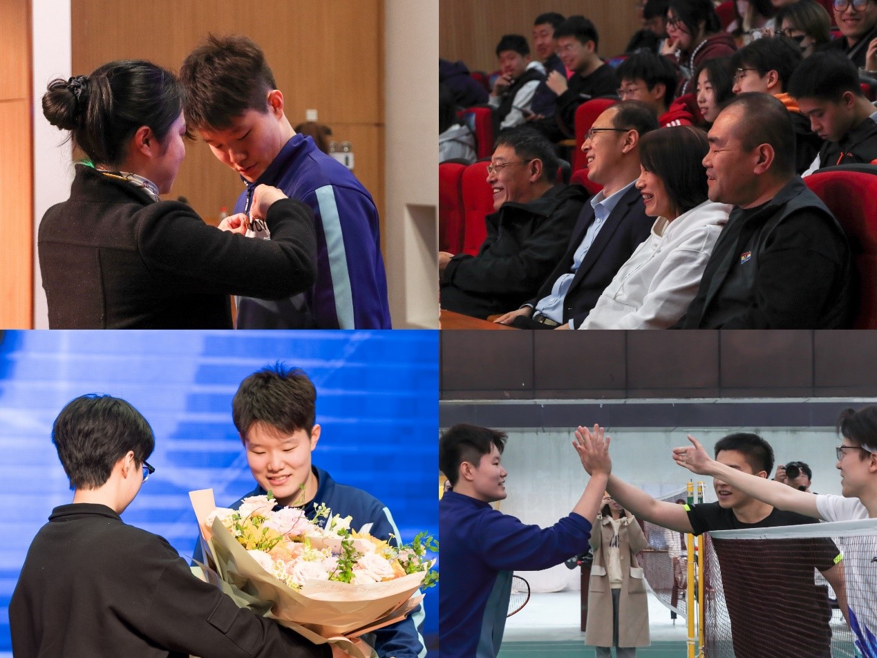 4月24日,《奋斗者》第二季第三场活动在校区E03报告厅如约而至。此次活动邀请到羽毛球世青赛双冠王、世界羽联印尼大师赛女子双打冠军、我校体育与健康学院2022级运动训练专业本科生刘圣书与师生分享她的奋斗故事。