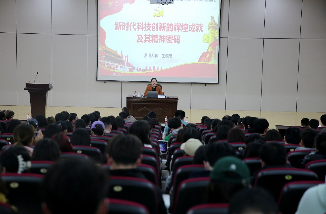 4月19日下午,盘锦校区学习宣传贯彻党的二十大精神第四期宣讲在G01报告厅如约举行。本场宣讲特邀教育部全国高校学习宣传党的二十大精神师生巡讲团成员、燕山大学党委学工部副部长、学工处副处长王银思教授以《新时代科技创新的辉煌成就及其精神密码》为题作辅导报告。本次宣讲由盘锦校区党工委主办、化工学院盘锦分院党总支承办,党委学生工作部副部长、学生工作处副处长兼盘锦校区学生事务办公室主任丁占英主持宣讲。