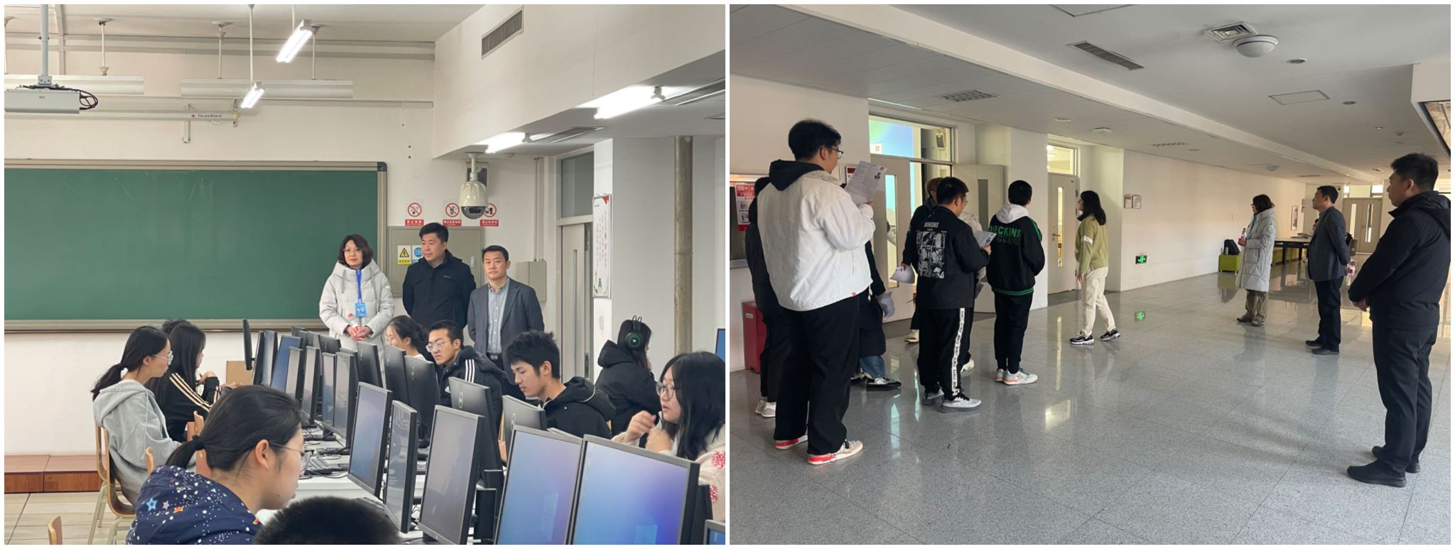 考试当天,辽宁省国家教育考试督察员莅临校区视察考试工作,盘锦校区管委会副主任孙刘劼、教务处副处长兼盘锦校区教学事务办公室主任王春鹏陪同查看了本考点考场环境、考场秩序及试卷保密室、考试监控指挥中心的具体情况,对考试现场的各环节进行了巡视指导。督察员对第三场次进行了全链条、全流程的跟踪,高度肯定了盘锦校区考点的考务组织工作。