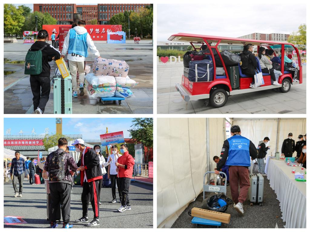 据悉,为了给学生和家长们创造隆重热烈、安全有序的迎新、返校氛围,落实疫情防控要求,今年迎新返校报到地点调整至校区南门和三重门广场,同时对校园内的整体环境进行了美化改造;校区在南门外分别设置了老生、新生入校通道和营口、盘锦返程通道;严格进行“一测四查”,报到注册工作条理清晰、井然有序。由于疫情防控要求,家长们不能进入到校园内,校区学生工作系统开展了“云游校园”直播活动,通过家长休息区电子屏播放,带领家长们云端观看校园风景、实验室、图书馆、宿舍等情况。校区安排校内摆渡车以及数百名新老生志愿者加入到迎新工作中,帮助新生提运行李送至宿舍,帮忙铺被褥、整理生活用品等,温馨周到的迎接新生。