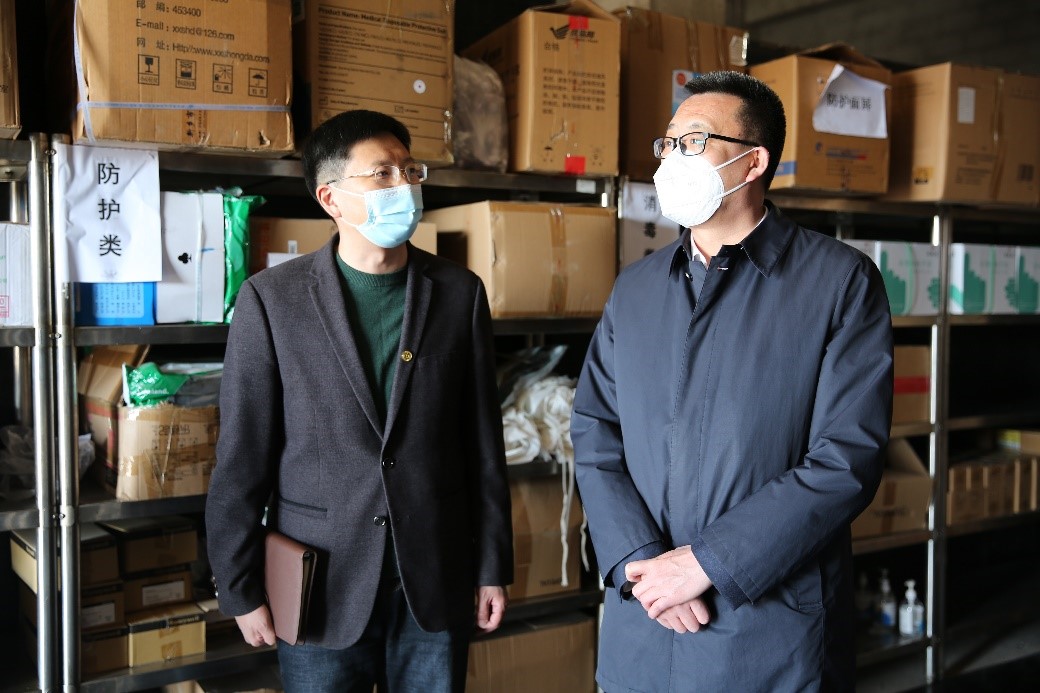 邢鹏现场查看了校区备用健康监测场所、防疫物资库,认真询问隔离点工作流程、人员配备、管控措施、环境消杀和生活防疫物资储备等情况。