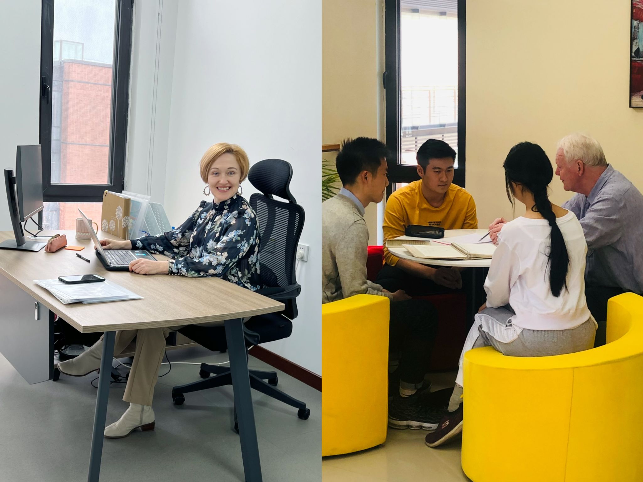 秉承育人为本的理念,校区采取了一系列举措保障外方教师在盘锦高质量开展教育教学工作。校区不仅提供了优越的、符合外方工作习惯的办公环境与办公软硬件设施,还建设有功能性的研讨空间,方便外方教师与学生开展一对一辅导或多人研讨。