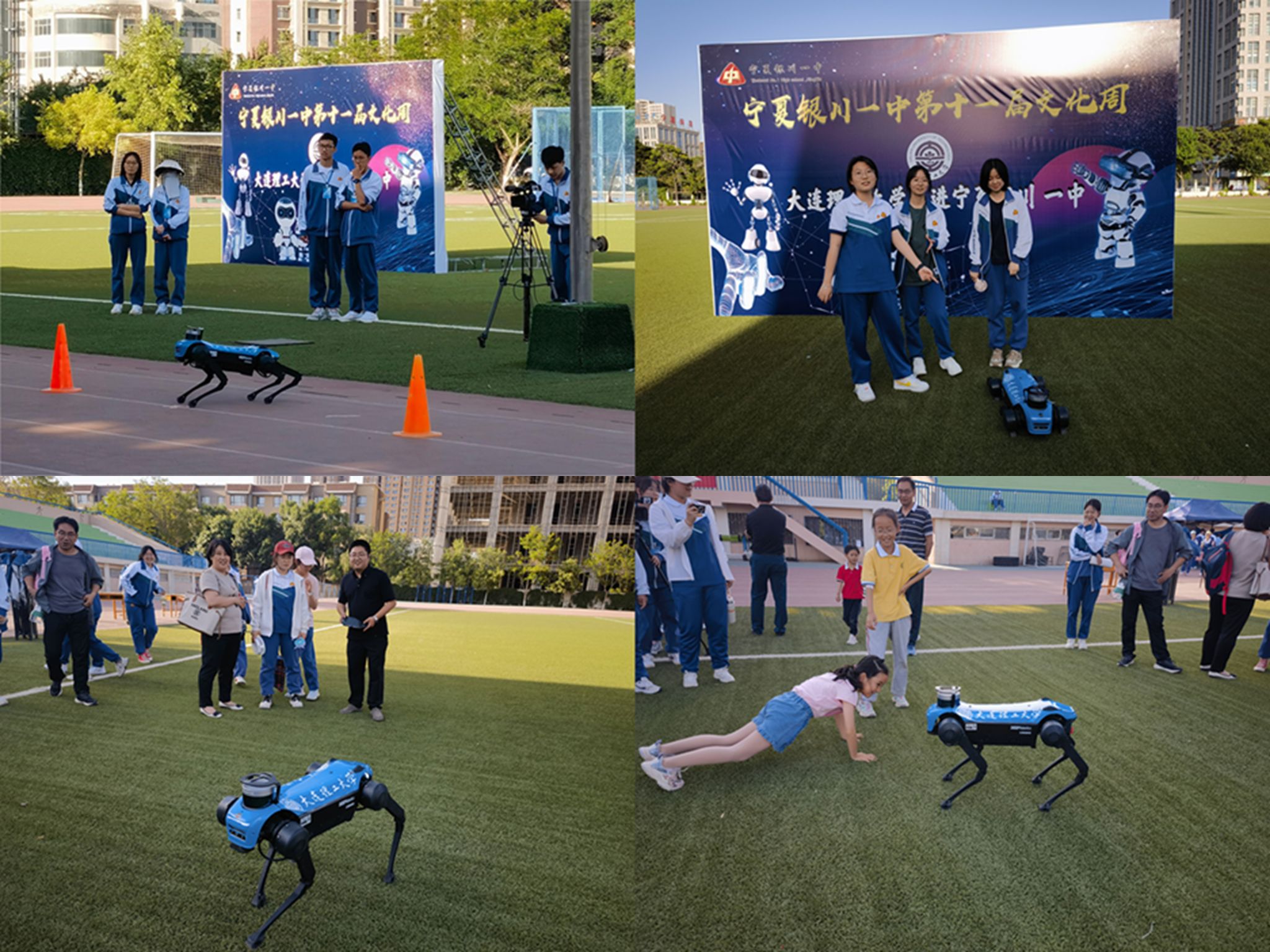 创新创业学院HPC团队科技转化成果之一的四足机器人亮相银川一中第十一届校园文化周开幕式,为全校师生呈现精彩的高质量展示,赢得阵阵掌声。