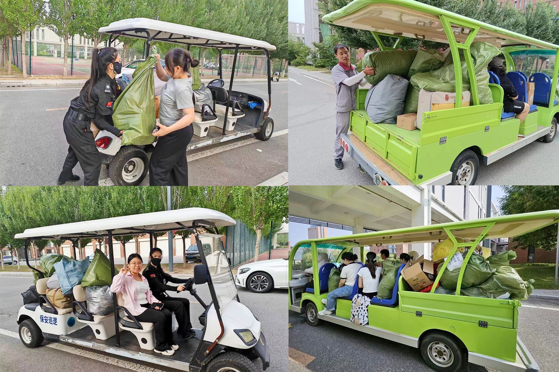 根据校区统一部署,暑假前需完成部分在校学生的宿舍搬迁工作。总务部采取了多种服务措施,助力学生公寓搬迁工作顺利进行:协调物业公司提供摆渡车及厢式货车协助学生搬运行李;组织物业人员上楼为有困难的学生搬运行李等。截至目前,已出动车辆290余台次,帮助480余名同学搬运行李2400余件,各项保障服务也得到了学生们的认可。