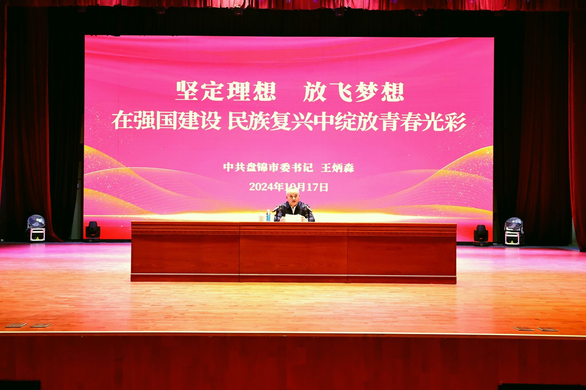 10月17日,盘锦市委书记王炳森到大连理工大学盘锦校区,以“坚定理想、放飞梦想,在强国建设、民族复兴中绽放青春光彩”为题,就深入贯彻落实习近平总书记对学校思政课建设作出的重要指示精神,感悟新时代以来党和国家事业的伟大成就,和师生们进行深入交流,激励广大学生进一步增强实现强国建设、民族复兴伟业的信心和决心,更好投入时代洪流、肩负时代使命,争做堪当时代重任的新时代青年,为伟大时代、伟大事业做出应有贡献。