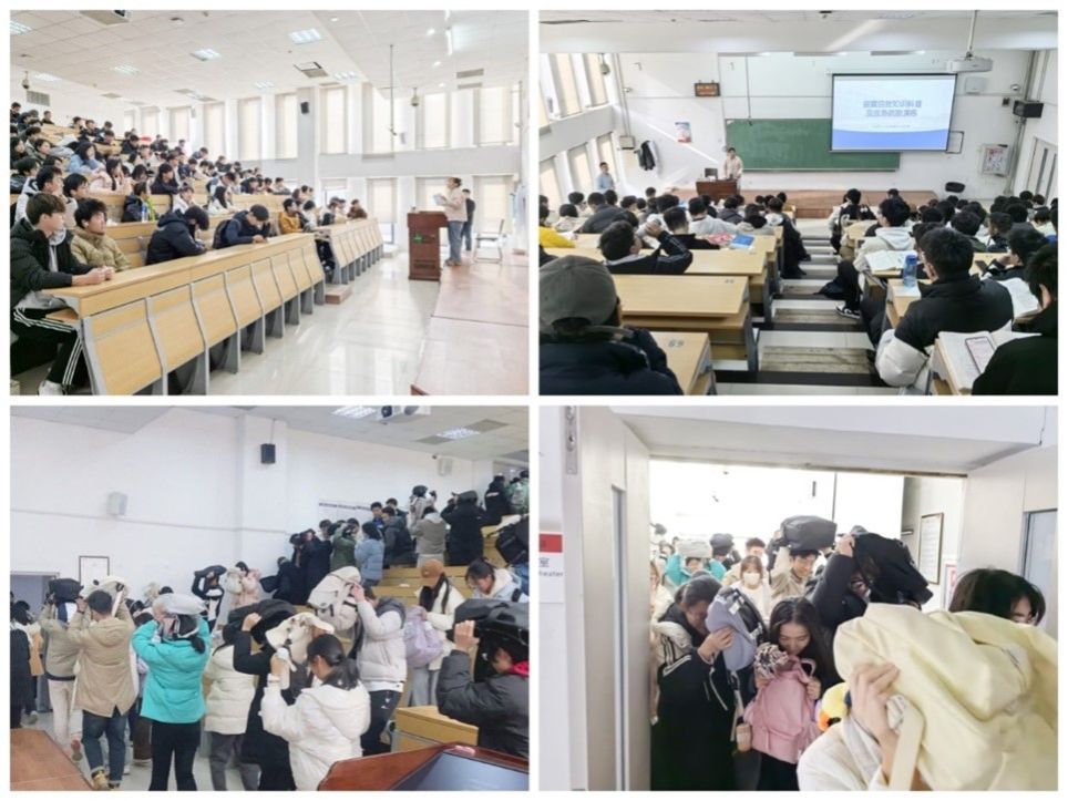 强化避震意识,开展知识科普及演练。11月19日,在主教学楼内,总务部为大一新生带来内容丰富、形式新颖的地震逃生知识科普讲座。保卫人员从地震预警原理到避震科学方法,以及应急疏散的关键细节,进行了详细讲解,使同学们对地震灾害有了较为全面的了解,为有效避震提供了理论基础知识。演练之际,模拟地震警报骤响,同学们快速响应,首先躲于课桌之下,以书包等物品护住头部;待主震“平息”后,在保卫人员的指挥下,同学们沿既定疏散路线紧急撤离,行动迅速有序,充分锻炼了协同能力与纪律意识。