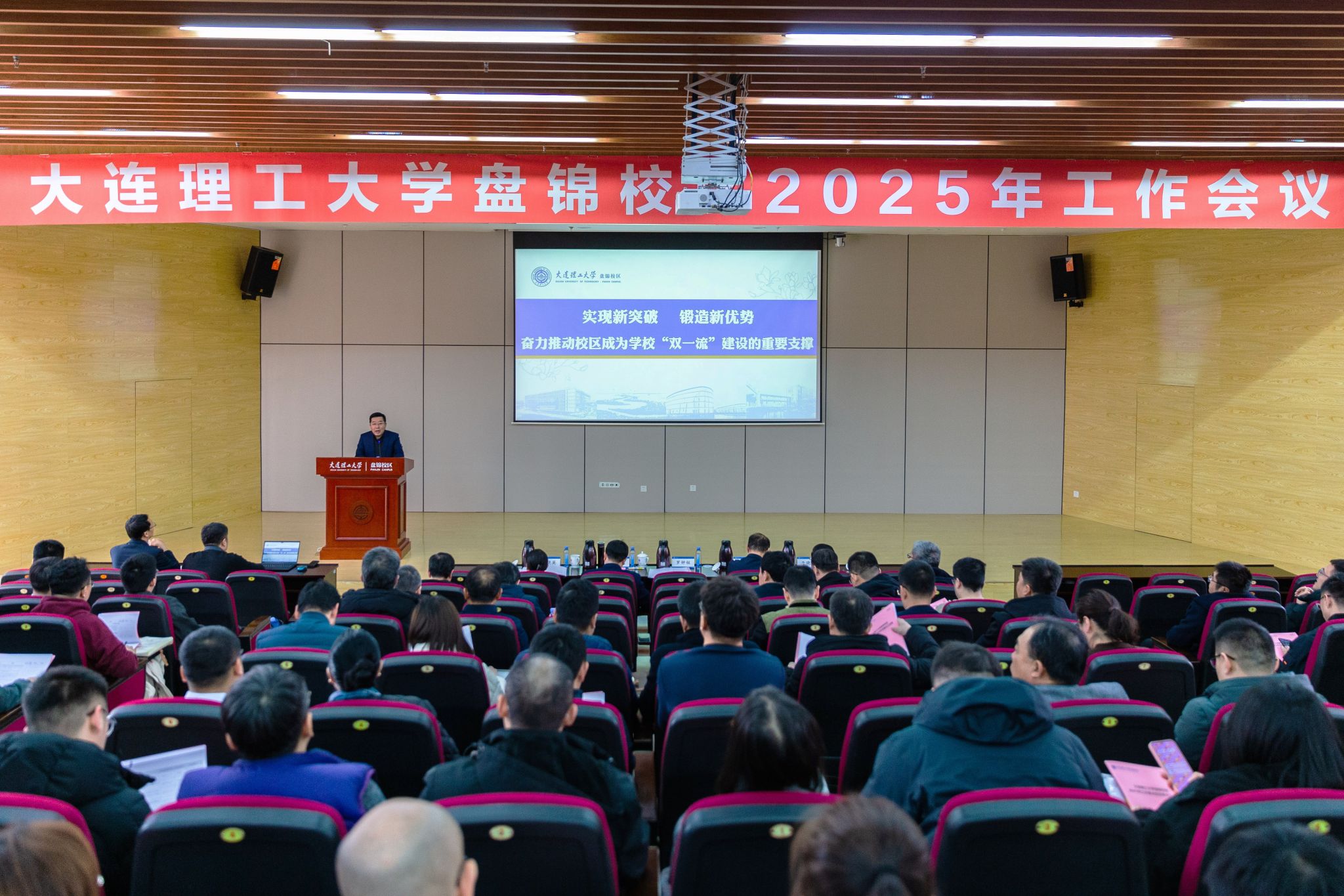 3月7日,盘锦校区2025年工作会议在行政服务楼报告厅举行。校区领导班子成员,校区各级人大代表、政协委员,校区学术分委员会委员,处级以上干部,全体党支部书记、机关管理人员、辅导员,党外代表人士、教师代表、学生代表等参加会议。
