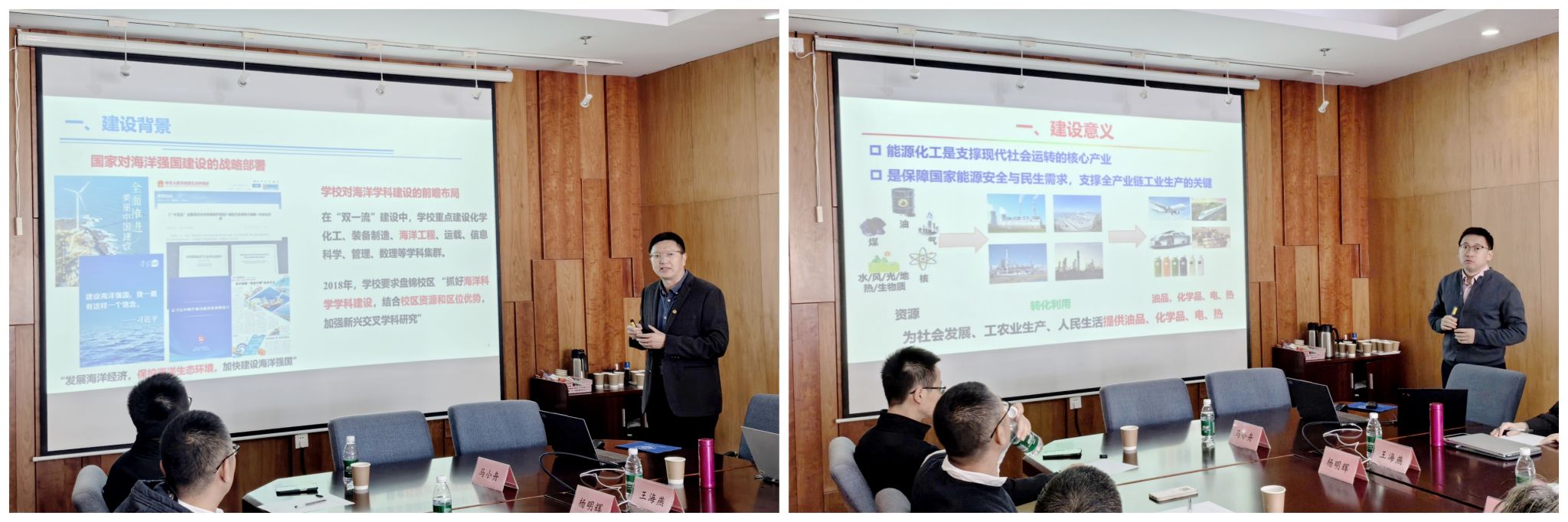 占敬敬代表团队汇报了“渤海辽东湾生态安全与可持续发展研究中心”的建设方案,方案包含建设背景、建设内容、建设可行性和建设目标。化工海洋与生命学院院长彭冲教授代表团队,从建设意义、内容和预期成效等方面汇报了“能源化工技术研发平台”建设方案。与会专家充分肯定平台建设的战略意义和筹备工作,同时结合国家战略需求与行业发展趋势,从研究方向聚焦、平台架构、创新性和社会效益等方面提出了意见和建议,为平台高质量建设提供了重要指导。