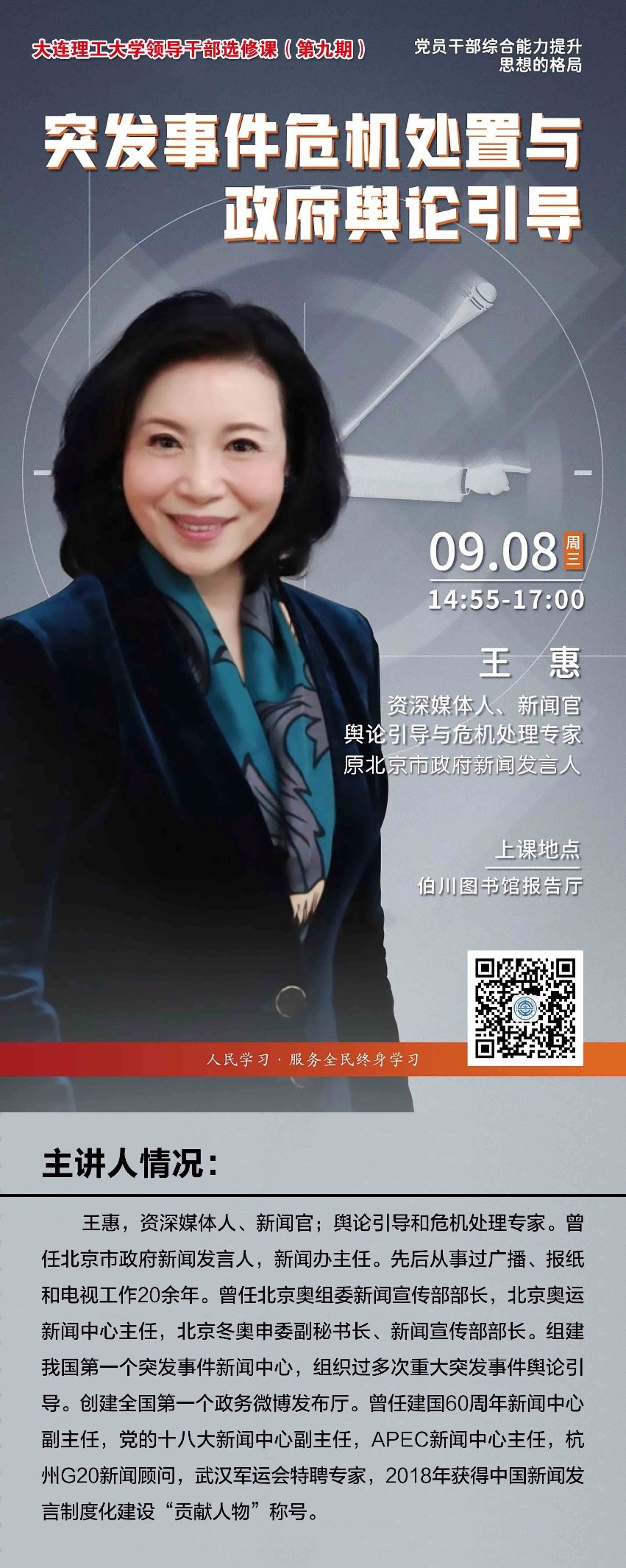 主讲:王惠资深媒体人、新闻官,舆论引导与危机处理专家,原北京市政府新闻发言人