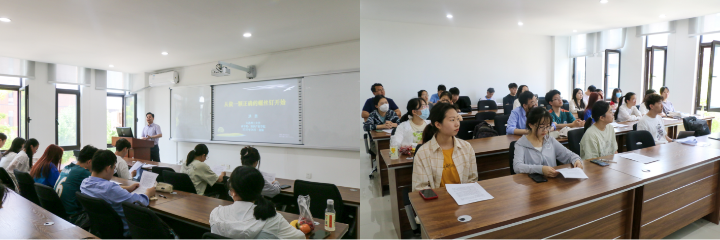 洪勇教授以“从做一颗正确的螺丝钉开始”为题开展毕业生讲座,全程以案例引导研讨的方式通过情境嵌入、问题启发式讲授,带动学生主动去思考与领会“为什么要把自己看成一颗螺丝钉”“什么是正确的事”“组织需要什么样的人”“要成为什么样的人”“职责与目标之间关系”等一系列问题的关键要义,最后共同明确走向社会的毕业生要学会从做一颗正确的“螺丝钉”开始做起,在每一个岗位要遵循目标思维,学会用正确的方法将正确的事做正确,成为一个组织需要、社会需要、国家需要的正确的人。讲座过程中,洪勇教授与同学们积极互动,现场气氛热烈。