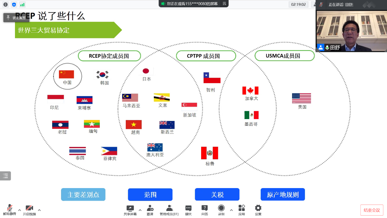 在本次讲座中,田舒老师结合自己在海关和咨询行业丰富的实践经验,从经济和管理视角深入剖析了RCEP对全球产业链及经济格局的影响,讲解内容深入浅出,具有很强的启发性。相信这次讲座能够帮助各位同学对RCEP有更加深刻、系统的认识,并以新的视角看待国际国内大势。