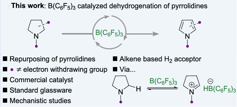 近日,莱斯特国际学院授课教师Alexander P. Pulis与李阳科研合作结出硕果,在TOP期刊ACS Catalysis(影响因子12.9)合作发表了题为“B(C6F5)3催化吡咯烷脱氢制吡咯(B(C6F5)3‑Catalyzed Dehydrogenation of Pyrrolidines to Form Pyrroles)”的研究论文。