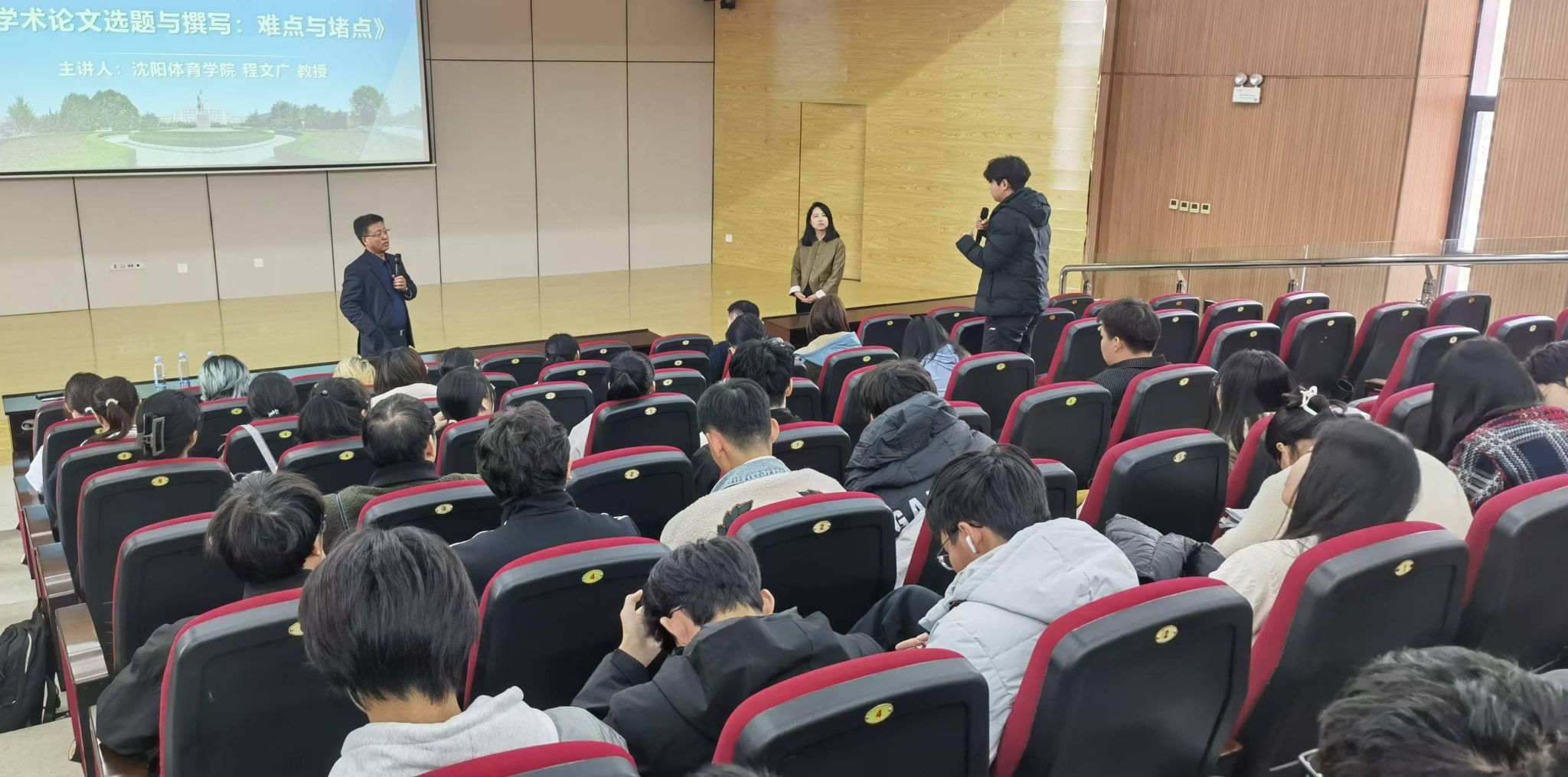 程文广教授作了题为《学术论文选题与撰写:难点与堵点》的学术报告。程教授首先从中国申办奥运会的历程讲起,回顾了奥运历史,结合自身经历,讲到了自己的研究领域。程教授详细介绍了获取相关文献的方式、选题面临的两个难点:选什么题目、为什么做并以自身研究为例讲解了选题的前瞻性、学术性、创新性、可行性。随后,程教授从学术期刊主编的视角,分析了学术论文撰写的难点与堵点。最后,程教授从实例出发,详细讲解了立项依据在申报国家级科研项目中的重要性。报告内容丰富、案例翔实,使与会师生获益良多。