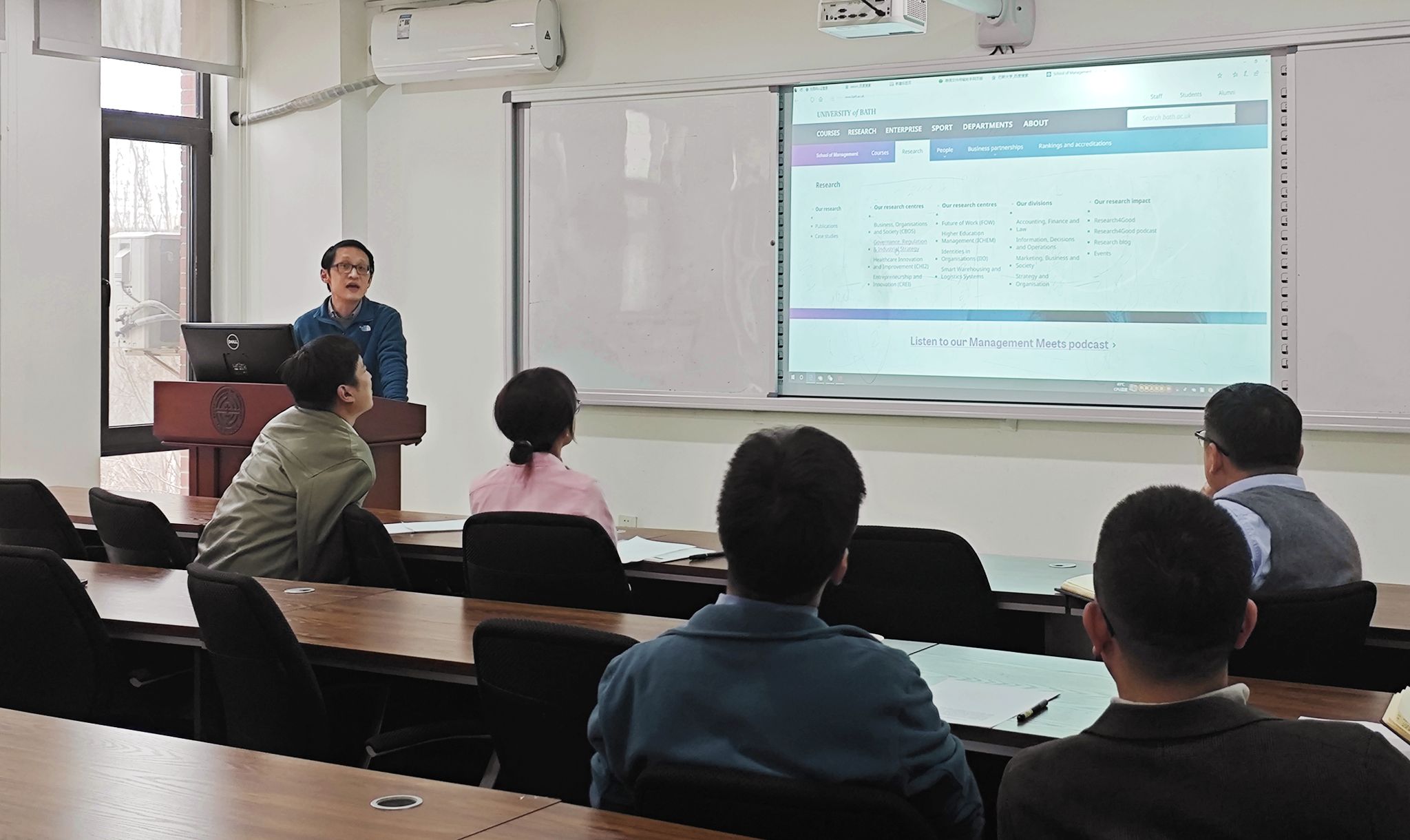为持续优化人才培养与科技创新的学术环境及科研氛围,建立有组织的科研模式,推动资源共享,持续提升校区教师队伍的科研水平,促进学科交叉融合与高质量成果产出,盘锦校区教学与科研工作部举办系列科技前沿学术讲坛。3月26日,第十七期科技前沿学术讲坛邀请英国巴斯大学杭海明教授来到校区作主题报告。本期讲坛由商学院承办。
