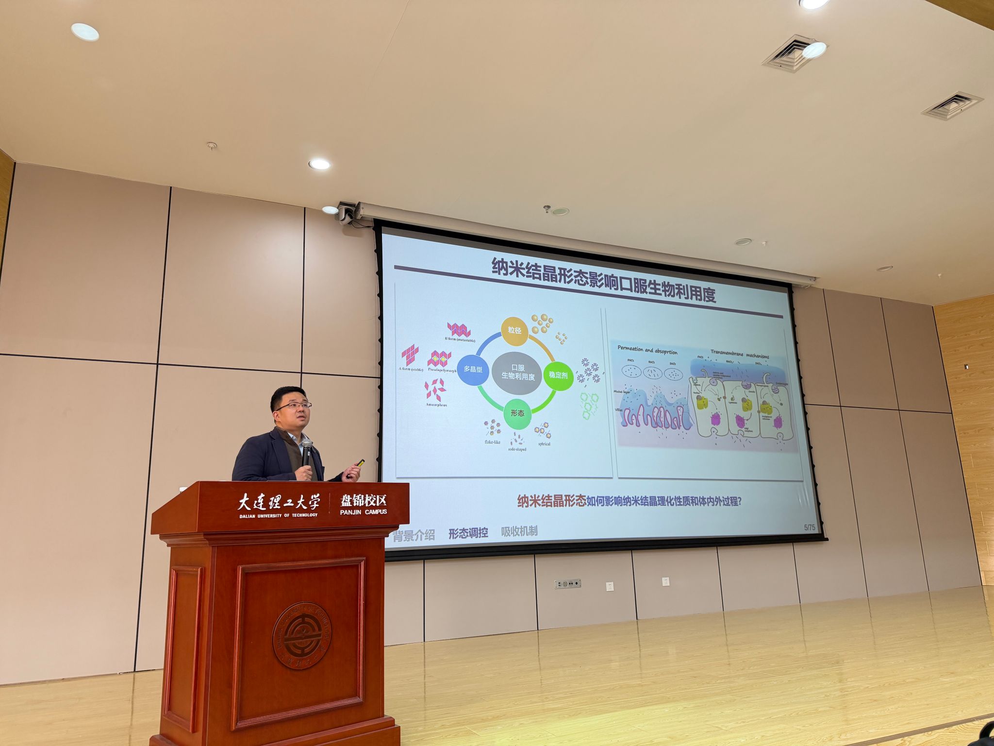 付强教授介绍了其围绕胃肠道屏障开展的系列研究成果。在难溶性药物递送方面,付强教授通过精巧的纳米结晶设计,发现“棒状”形态能极大提升药物在肠道的穿透与吸收效率,并首次利用先进的示踪技术,揭示了其“溶解-扩散”的吸收机制。这对难溶性创新药制剂方法的选择具有指导意义。在炎症性肠病治疗方面,付强教授团队还研制出一款“智能可饮用水凝胶”,它既能像“液体创可贴”般保护受损肠道,又能主动调节免疫、修复肠道屏障,为炎症性肠病的治疗提供了一种新方案。