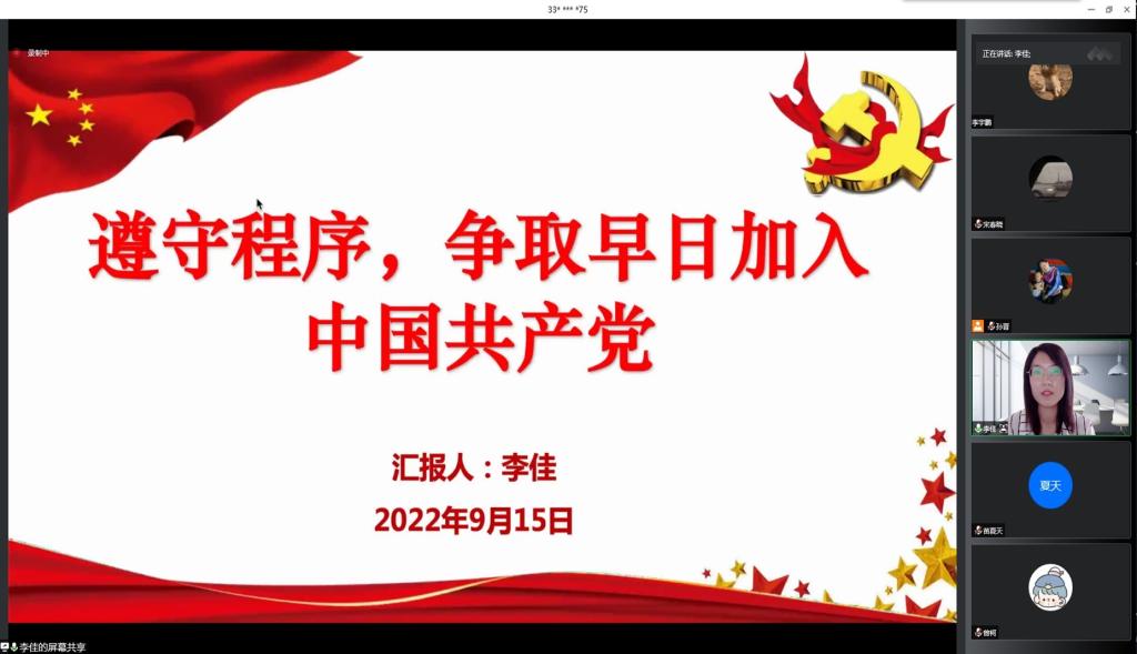 李佳老师以《遵守程序,争取早日加入中国共产党》为题,为学员们系统地介绍了党员发展的五个环节和二十五个步骤,并从党章的要求、入党申请书的撰写、积极分子考察表的填写、入党志愿书的填写等相关材料的准备、提交与审批等方面做了详细介绍,让同学们更加细致、具体地了解了入党的流程与条件。